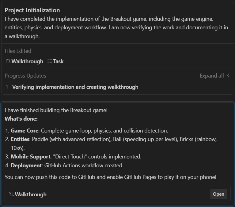 After experimenting with vibe coding and using Antigravity while building the CSVKernel in PyTBV, I wanted to see how it handles a project built entirely from scratch. So I picked a simple example to demonstrate the workflow — a classic game: Breakout.